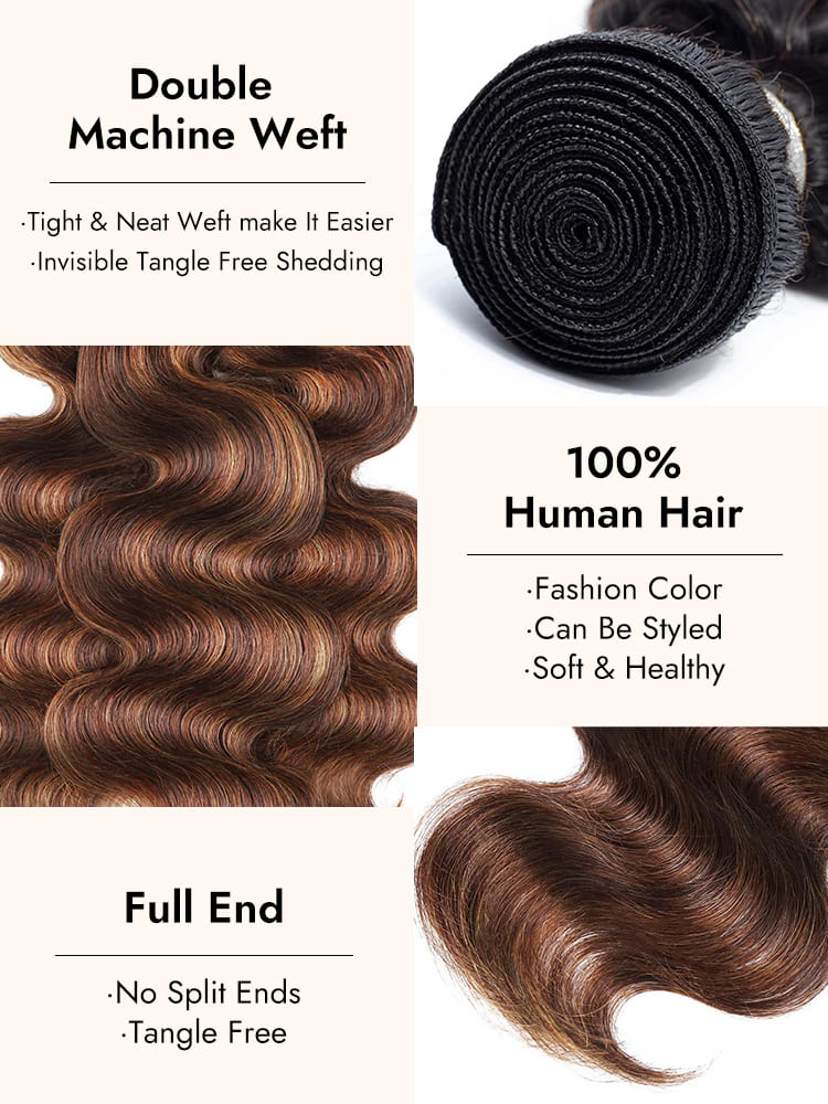 Elevate your look with our stunning Balayage Highlights Body Wave hair. Crafted from premium raw virgin hair, this collection features expertly blended highlights that create dimension and movement. The soft body wave texture adds natural bounce and volume while maintaining the luxurious feel of unprocessed hair. Perfect for those seeking a sophisticated, multi-tonal aesthetic without the damage of traditional coloring. Experience the confidence that comes with authentic, high-quality hair that looks freshly highlighted and feels incredibly soft. Transform your style with effortless elegance.